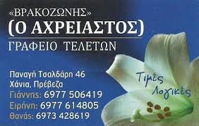 ΓΡΑΦΕΙΟ ΤΕΛΕΤΩΝ ΒΟΝΙΤΣΑ - ΓΡΑΦΕΙΑ ΤΕΛΕΤΩΝ ΒΟΝΙΤΣΑ ΠΡΕΒΕΖΑ - Ο ΑΧΡΕΙΑΣΤΟΣ - ΒΡΑΚΟΖΩΝΗΣ