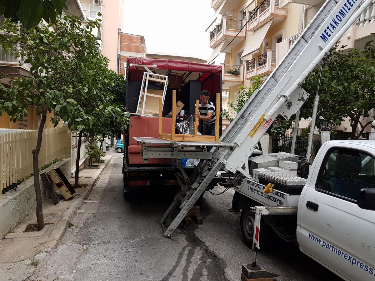 Διαθέτουμε πλήρες συνεργείο, έτοιμο να σας εξυπηρετήσει την κάθε στιγμή, υλικά συσκευασίας άριστης ποιότητας και ανυψωτικό μηχάνημα για εύκολη και ασφαλή παραλαβή – μεταφορά των εμπορευμάτων.