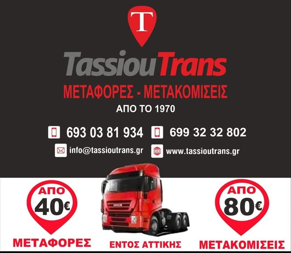 TASSIOU TRANS - ΜΕΤΑΦΟΡΕΣ ΝΕΑ ΣΜΥΡΝΗ - ΜΕΤΑΚΟΜΙΣΕΙΣ ΠΕΙΡΑΙΑΣ - ΜΕΤΑΦΟΡΕΣ ΕΜΠΟΡΕΥΜΑΤΩΝ ΠΕΡΙΣΤΕΡΙ