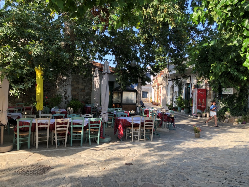 Εδώ μπορείτε να καθίσετε κάτω από τη σκιά του παλιού πλατάνου που βρίσκεται στην πλατεία, να χαλαρώσετε,