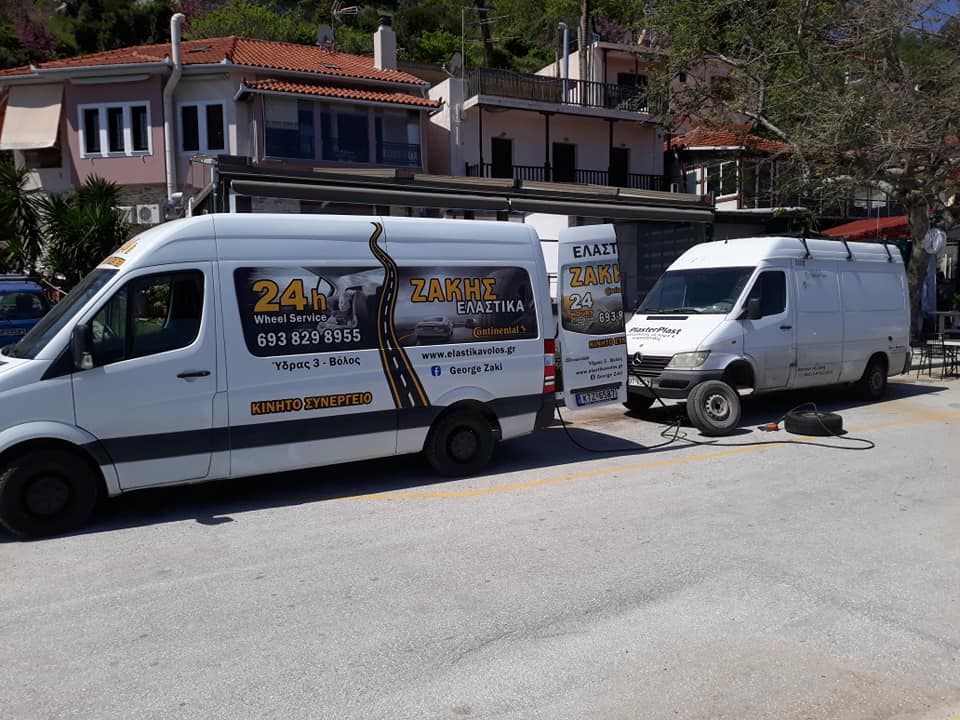 Εάν πάθατε λάστιχο στο δρόμο, το βουλκανιζατέρ μας "Γιώργος Ζάκης" διαθέτει κινητό συνεργείο αυτοκινήτων που είναι σε θέση να σας εξυπηρετήσει άμεσα όλο το 24ωρο.